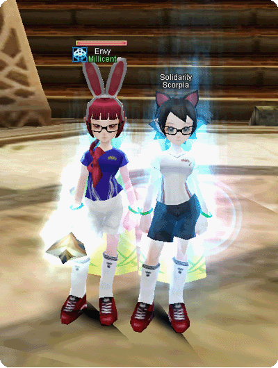 ▲ After thatAya, Dori and I went to the arena because we were bored. So then after awhile I saw Hexi and this other dude showing off their Sylia's ö.ö So I went to join them. Dori said I needed cat ears and SchoolEvent Gift cape to match Hexi so she lended me her cat ears and swapped capes with me XD. And Ta-da we're on a roll o_o" L0L !!